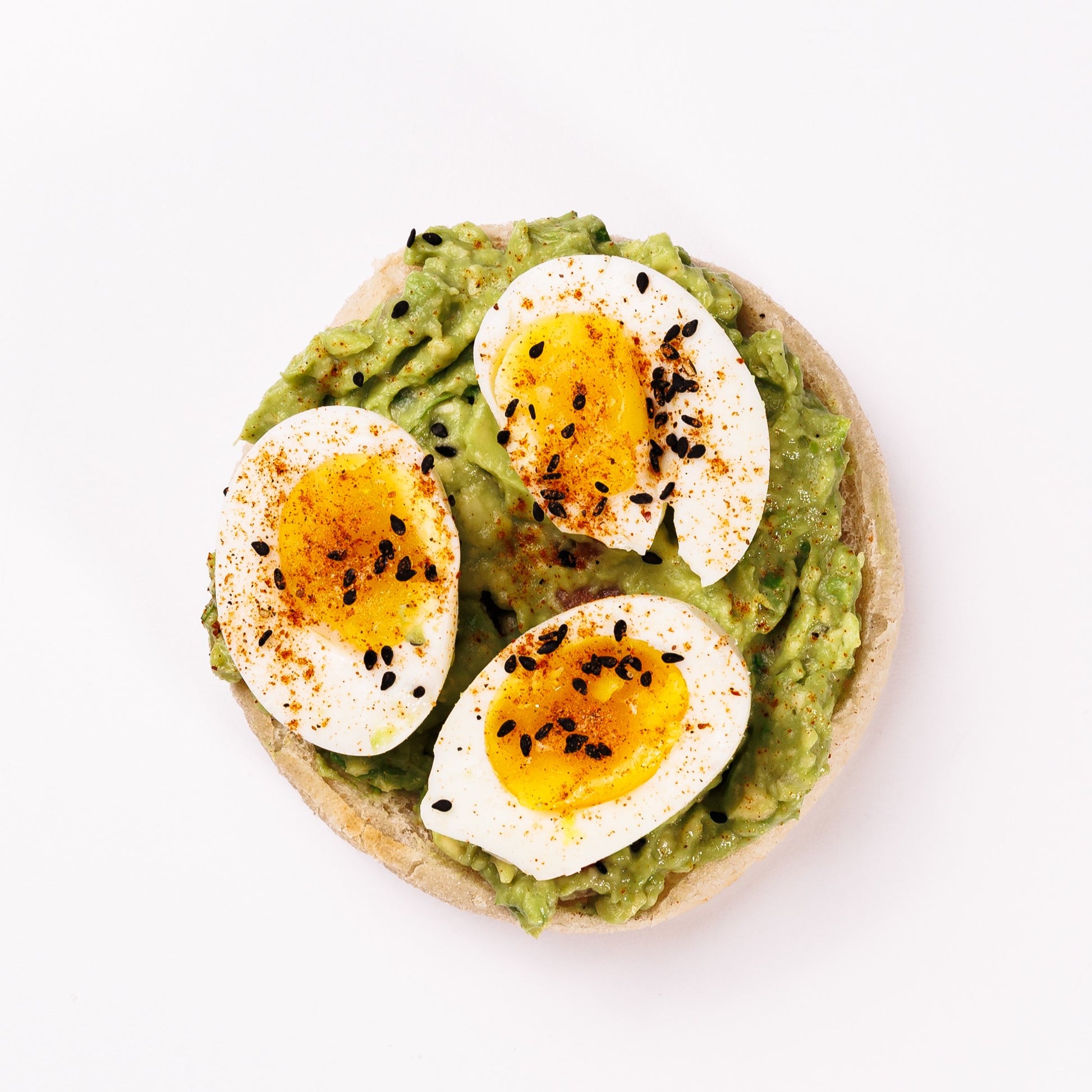 Sourdough bun, guacamole, 1.5 eggs, cajun spice, sesame seeds.